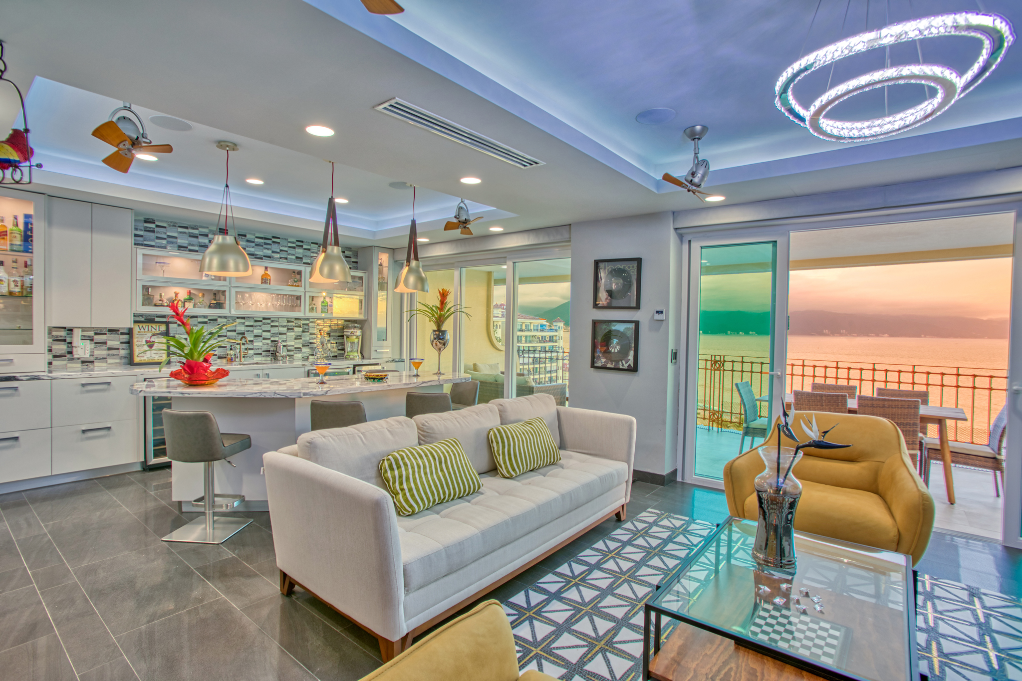Impeccable, completely remodeld penthouse located on the beach in the exclusive Bay View Grand complex with the best location in Marina Vallarta! Enjoy comanding views of the ocean and Puerto Vallarta coastline. Great Amenities; pool. gym, tennis courts, restaurant and parking. CALL NOW