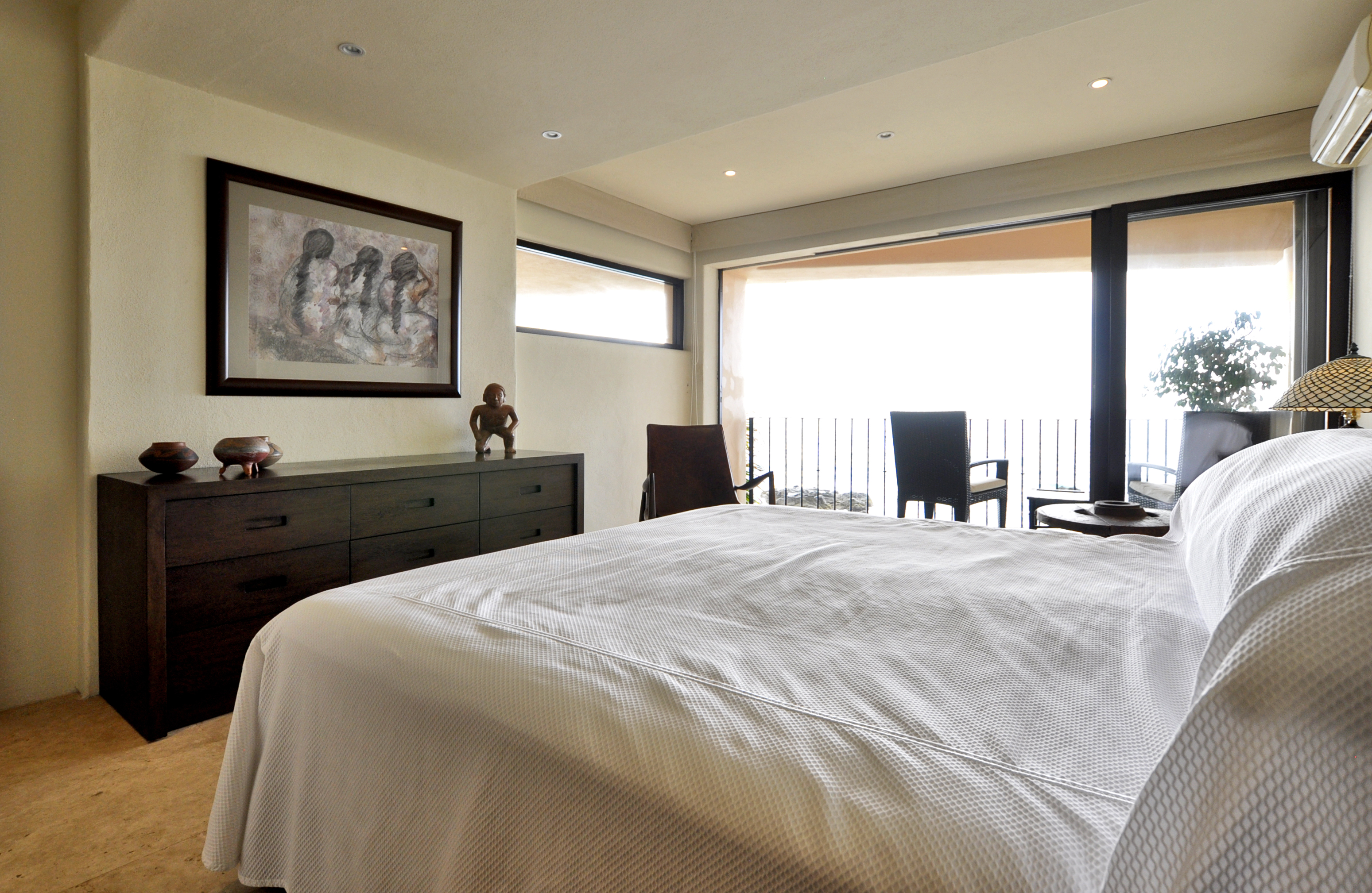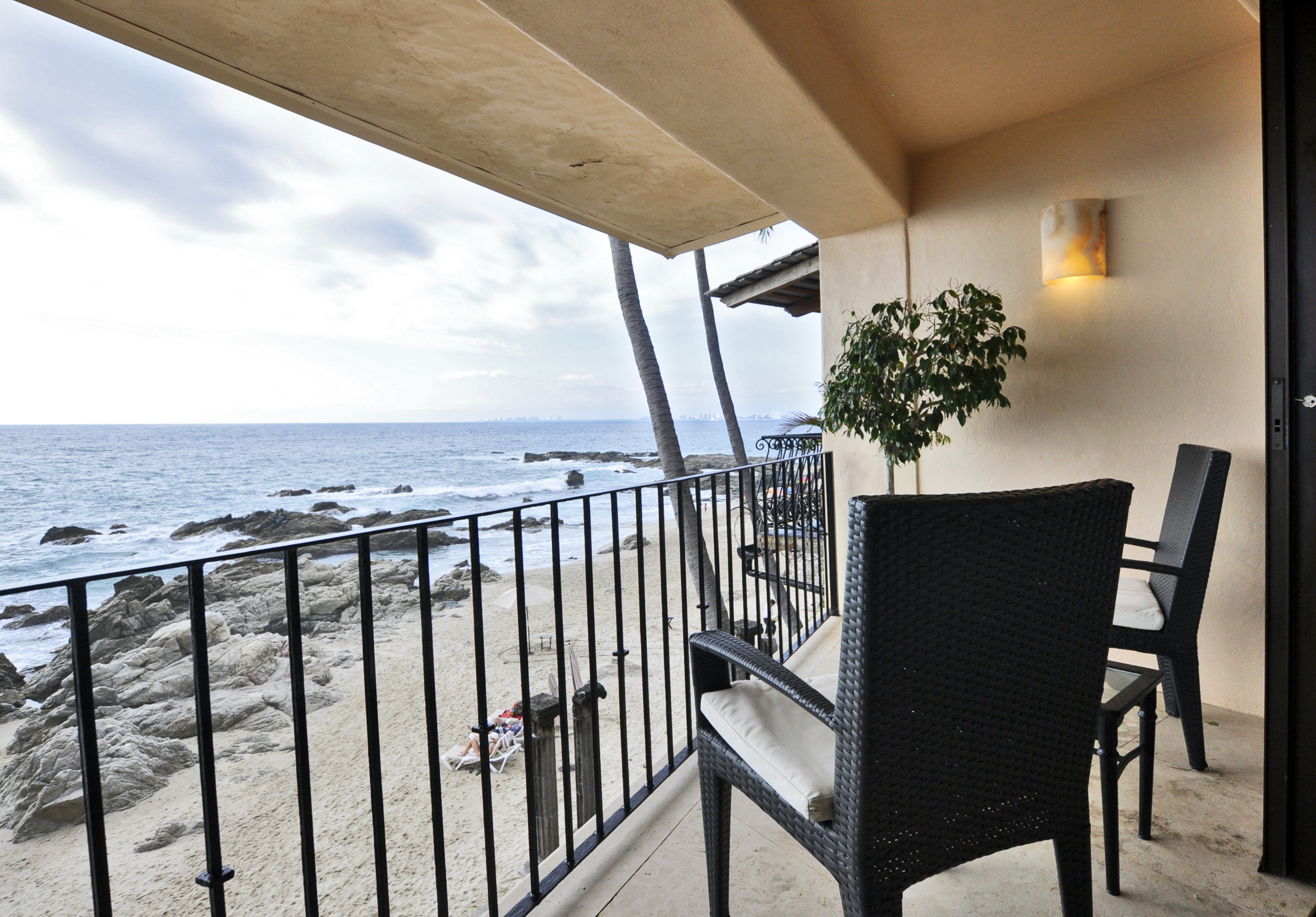 This beautiful property is located only 2.5 miles south of Old Town on the safest white sand swimming beach in Puerto Vallarta. It has breathtakingly spectacular 180-degree views of Banderas Bay. There is a beautiful blue oval swimming pool with cantilevered over the ocean. This property is a hidden treasure with special privacy, 2 bedrooms ensuite with great views, a bed in studio, nice and comfortable living room and contemporary kitchen with all top miele appliances. Building mostly owner-occupied, great for those seeking tranquility, peace and respectful of nature small boutique building in PVs top location. This beautiful property is only 10min walk along the beach from one of the most popular breakfast restaurants in Puerto Vallarta LINDO MAR and OXXO convenience store only 5 minutes walk.